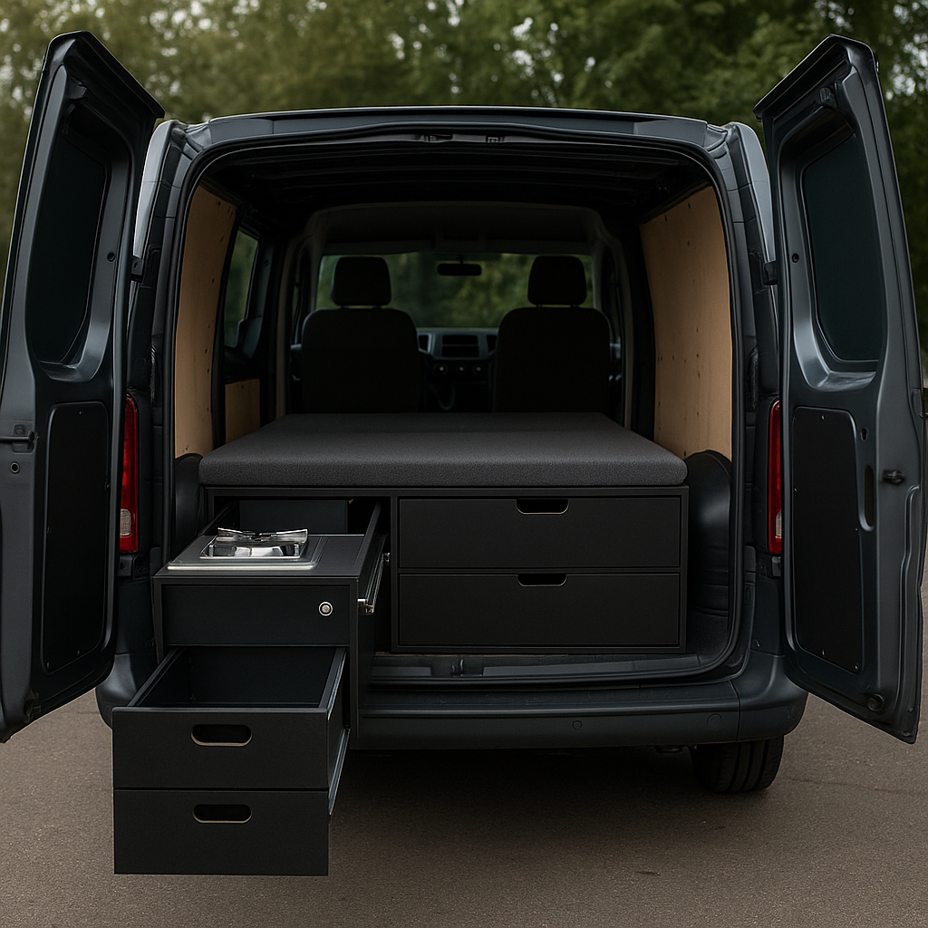 Overdag is het je betrouwbare werkbus – stevig, professioneel en ingericht voor jouw vak. In het weekend bouw je hem moeiteloos om tot comfortabele camper, zonder gereedschap of technische kennis.